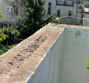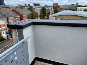 Here we had an issue of constant water penetration into the property in a number of areas a veranda, an upper flat roof, and coping stones all around… this meant we had to find a solution. – completed for a housing association.